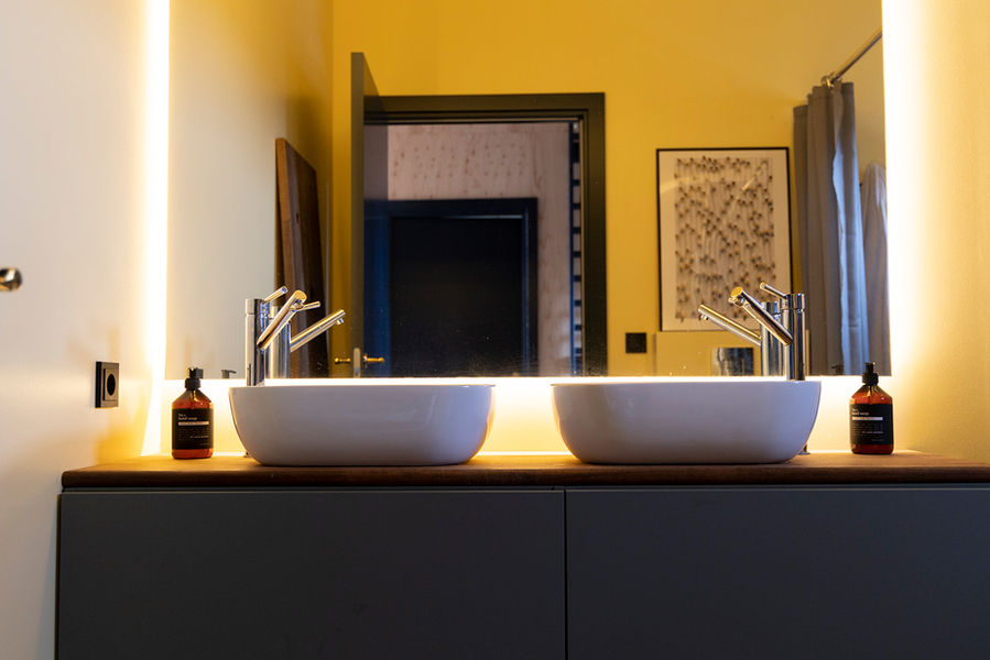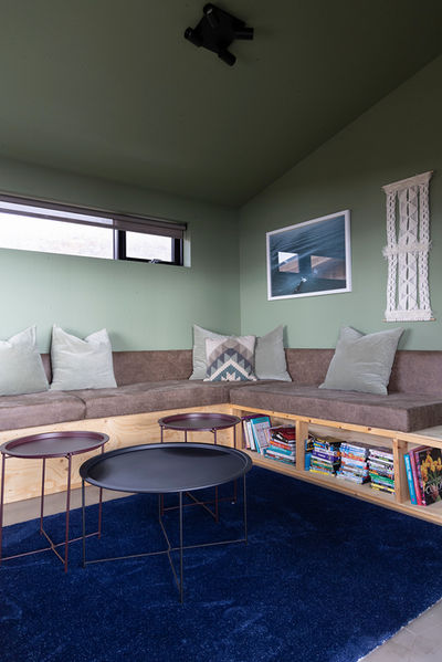 Sara Martí and built in 2020 by Tresmiðjan Akur in Akranes and assembled on the land. It is 75 sqm and has two bedrooms, both with double beds, a warm and bright bathroom and a secret room (for the kids or for storage) above one of the bedrooms. It has an open kitchen and dining room with the most spectacular view over the fjord where you have light 24h a day in summer and incredible northern lights in winter that can also be enjoyed from the outdoor jacuzzi on the veranda. Next to the dining area is the third and last room, a tv/sitting room that can also sleep three guests. Outside on the veranda, you find a small storage/washing room. There is underfloor heating and storage space in the kitchen and tv room.